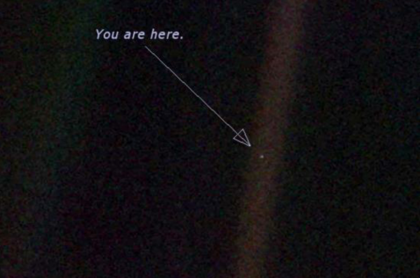 The Pale Blue Dot is a photograph of planet Earth taken on February 14, 1990, by the Voyager 1 space probe from a record distance of about 6 billion kilometres.