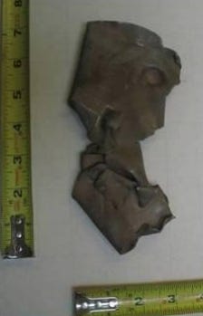 The coatings on the samples are especially unique since conformal coatings of this sort, rich in silica, titania, magnesia, sulphate, phosphate, and chloride and mixed with the metal, were almost definitely not accessible in 1947.