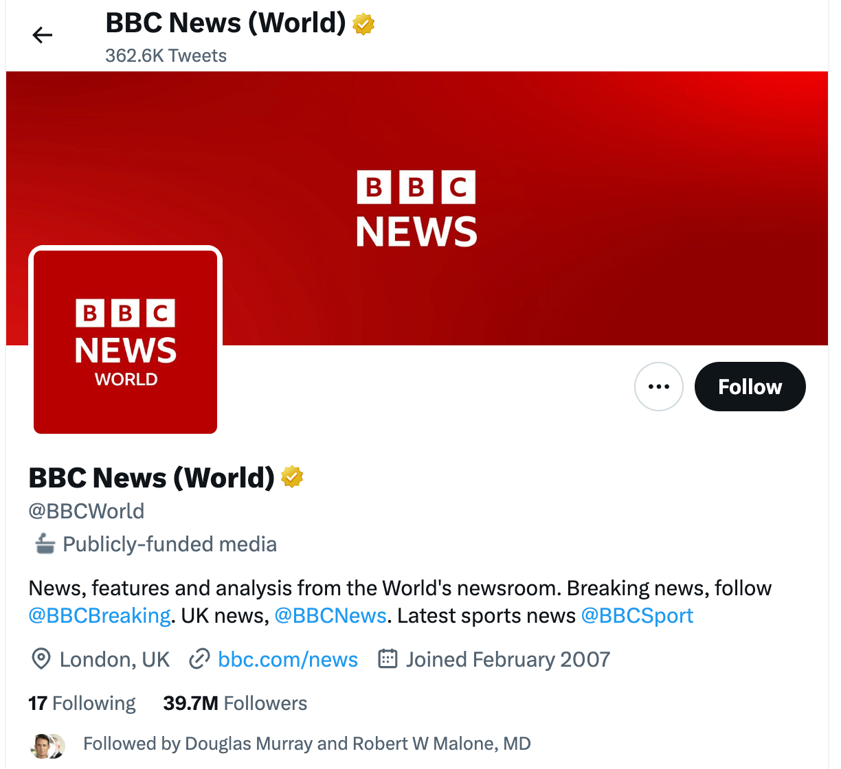 BBC News and NPR were both recently labelled by Twitter as well. The move upset NPR so much that they decided to leave Twitter. The BBC objected to the labelling but has stuck around.
