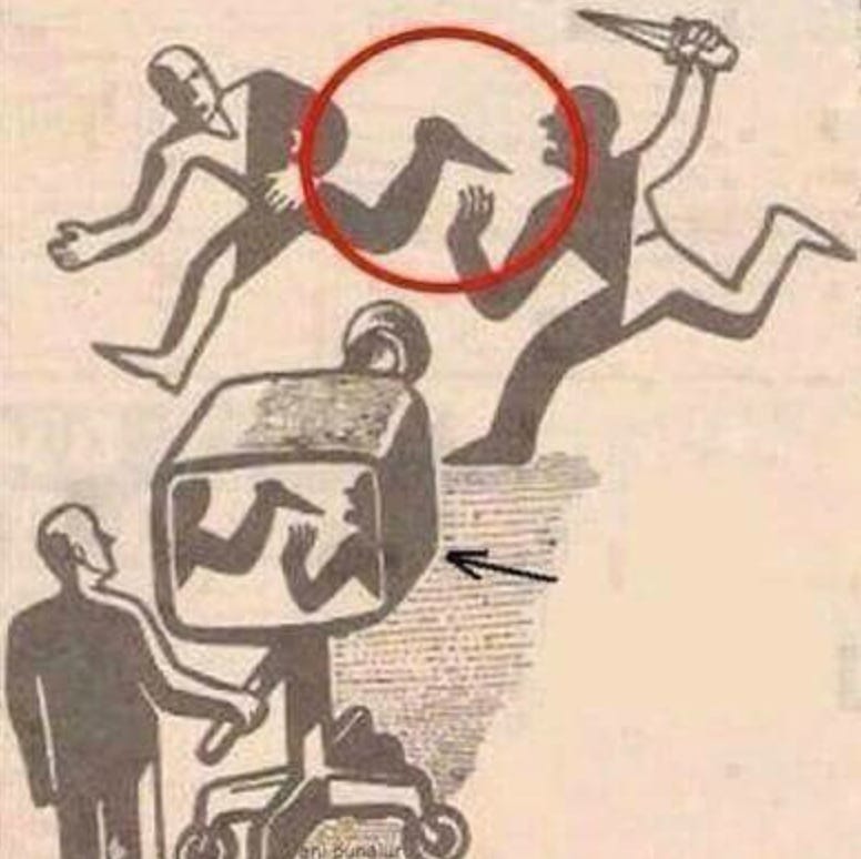 The image depicts how the MSM often functions, you mostly get a piece of the story: