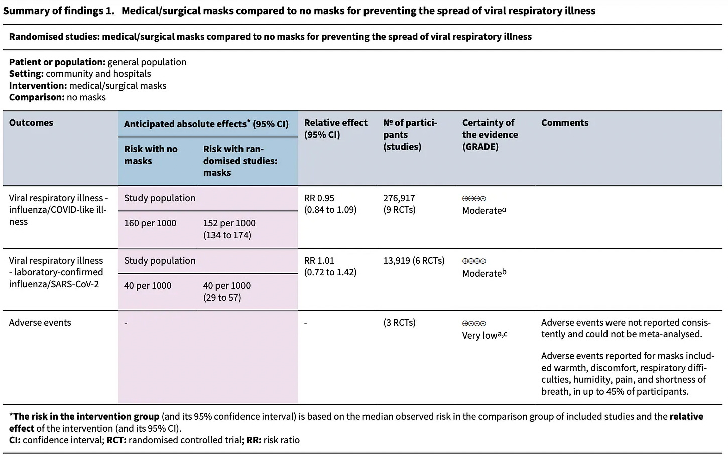 This is not looking at one study that shows benefits, or one study that shows no benefits. This is a meta-analysis. It took all of the best research we have with regards to masking and determined what the science truly shows. Meta-analyses are often one of the best ways to truly get clear on a question regarding medical interventions.