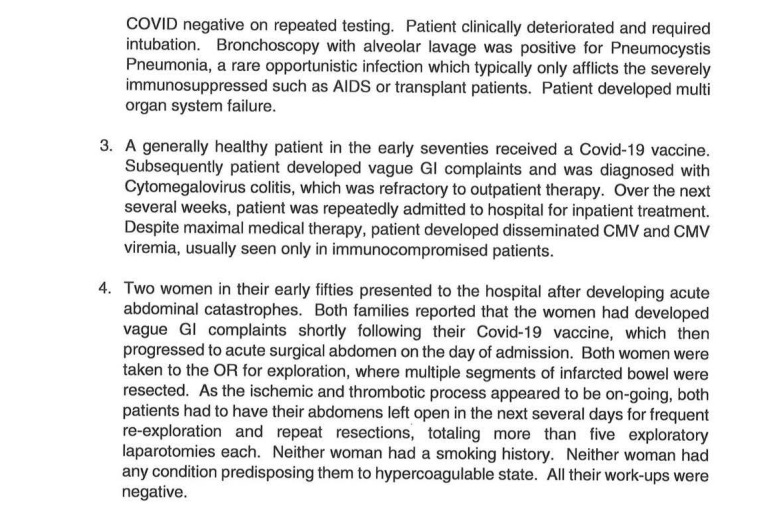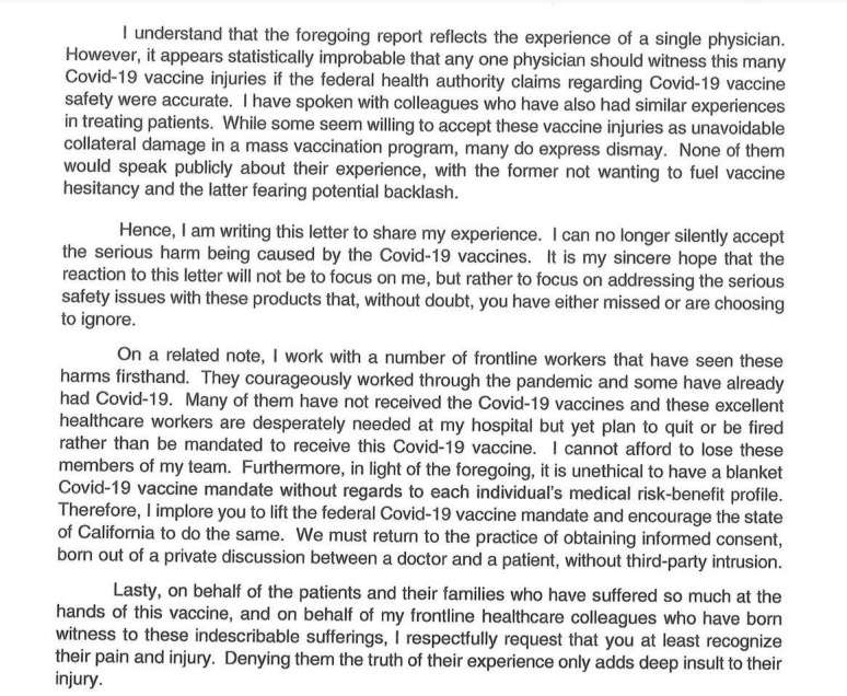 Below is a letter to the FDA and CDC Covid-19 Task Force from Dr. Patricia Lee, a California physician regarding COVID vaccine injuries she has seen in her patients. For more information on COVID vaccine injuries and the data that has been accumulated, you can refer to this article.