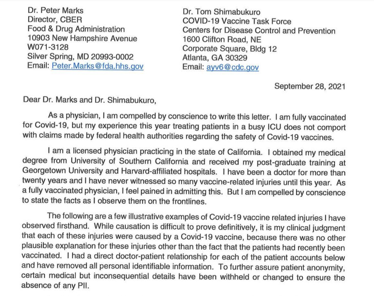 Doctor Pens Letter To CDC & FDA Over Multiple Patients COVID Vaccine Injuries