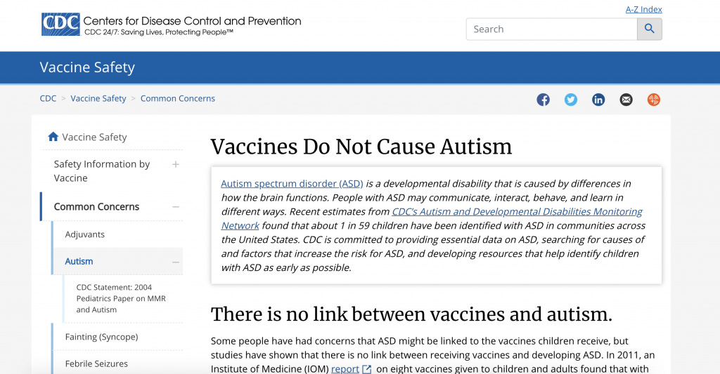 Does The CDC Have Evidence To Support Their Statement "Vaccines Don't Cause Autism?"