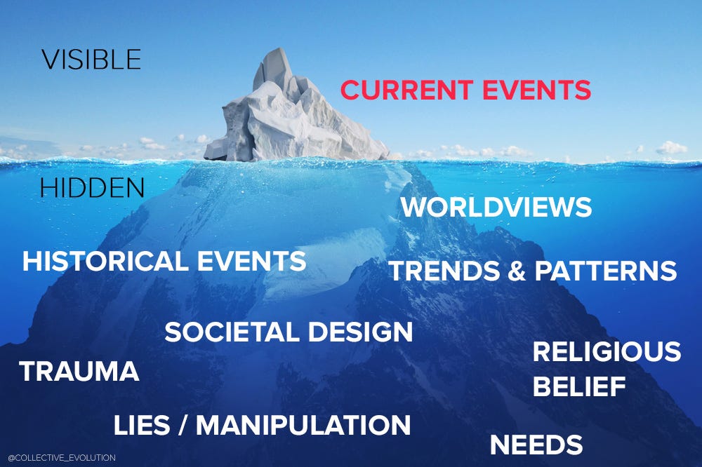 The iceberg model was a driving factor in creating Collective Evolution well over a decade ago. I wanted to understand the totality of what was driving humanity’s current moment by looking all the way to our worldview and consciousness, and seeing how that shapes what occurs in our human experience.
