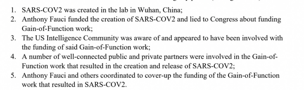 These emails claim that Fauci knew at the beginning of 2020 that a genetically manipulated virus may have leaked, intentionally or unintentionally, from the lab in Wuhan.