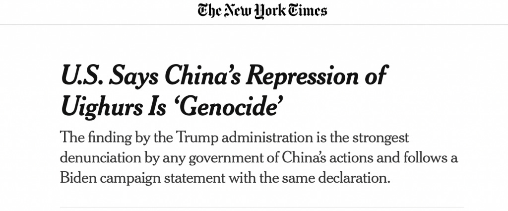 With going concern about asian hate seen throughout the pandemic, some of the most extreme asian hate taking place right now is at the hands of the CCP in China through extreme crimes against humanity that fit the UN's definition of genocide. Yet there's no mainstream pushback.