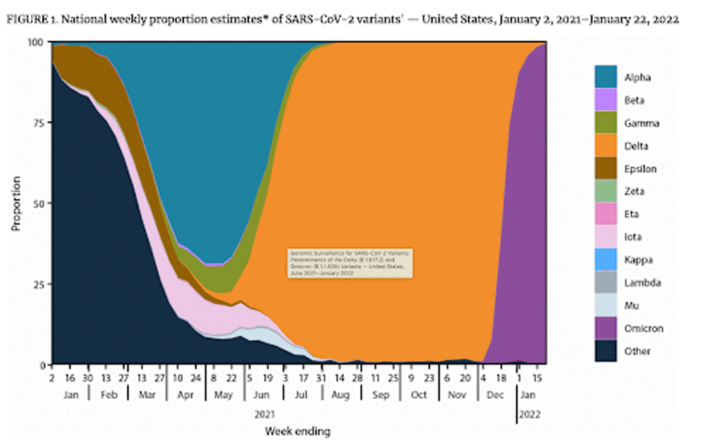 As of the beginning of 2022, the Omicron variant is responsible for the overwhelming majority of cases, hospitalizations and deaths in this country.