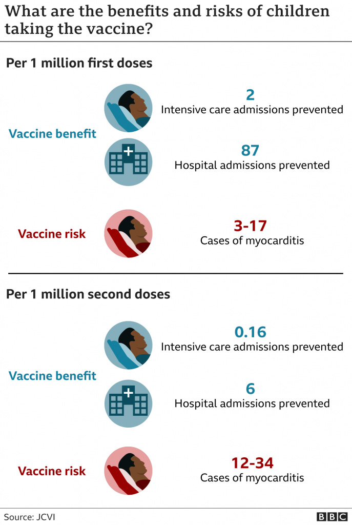 The JCVI data was referenced in a BBC article to analysis the benefits and risks between the first and second dose of a mRNA vaccine for teenagers.