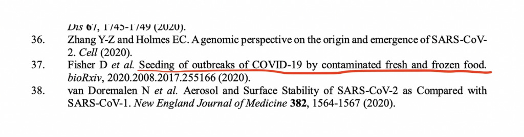 Anderson’s preprint survives in that report to this day, buttressing the hoary argument that frozen foods transported to Wuhan could have caused the outbreak.