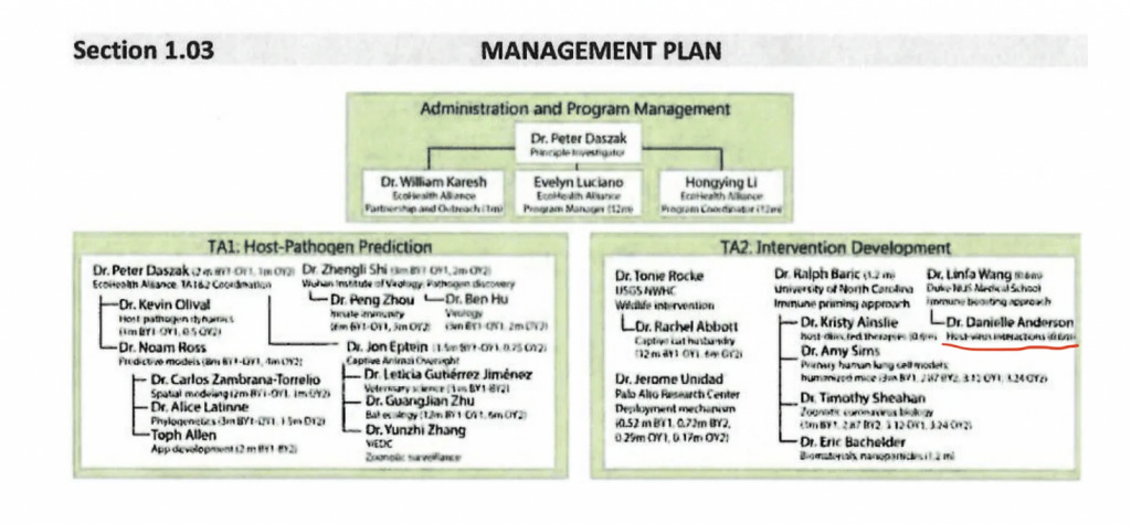 Anderson appears in the DARPA proposal’s management plan as working under Linfa Wang.