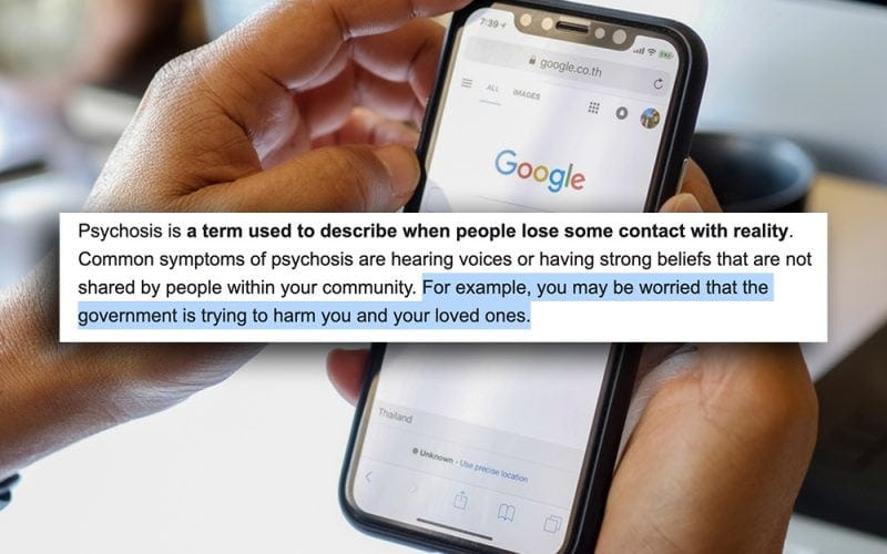 Google 'Psychosis' & You Get: "You May Be Worried That The Government Is Trying To Harm You."
