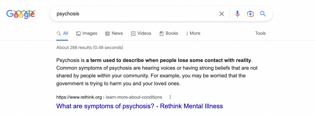 I typed in 'psychosis' on Google only to find a returned result that looked like this: