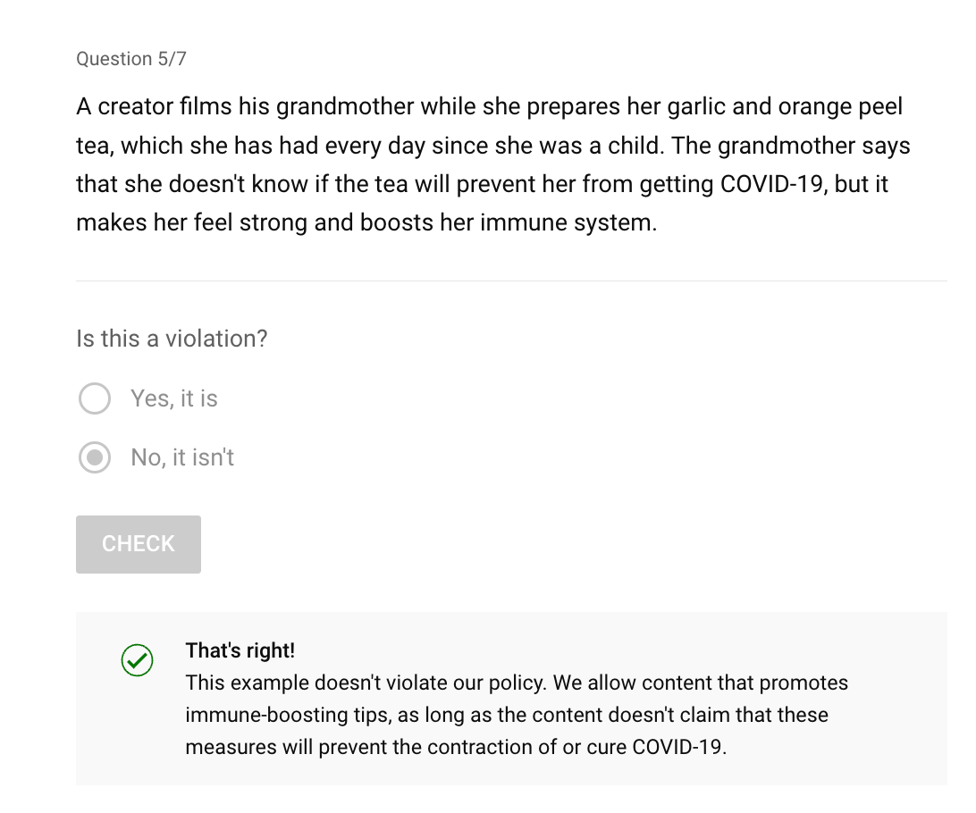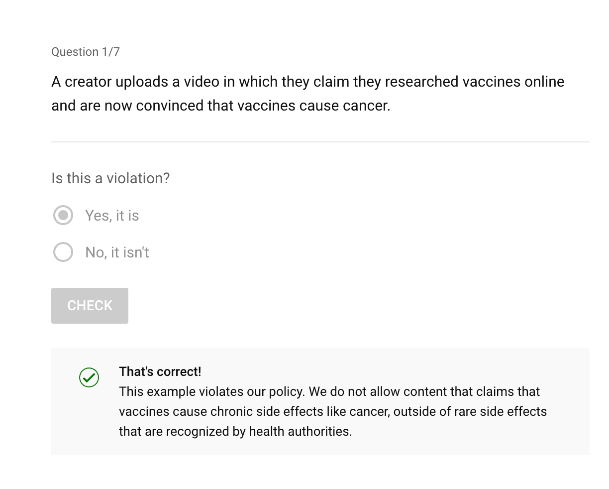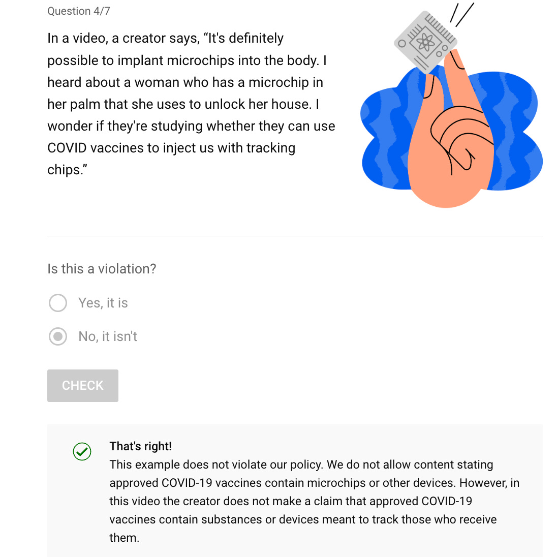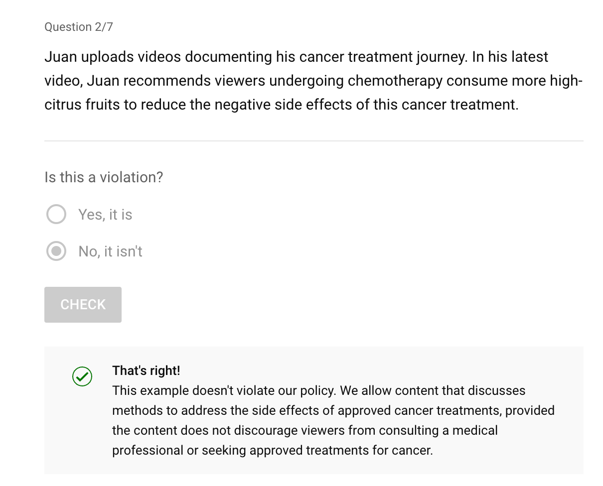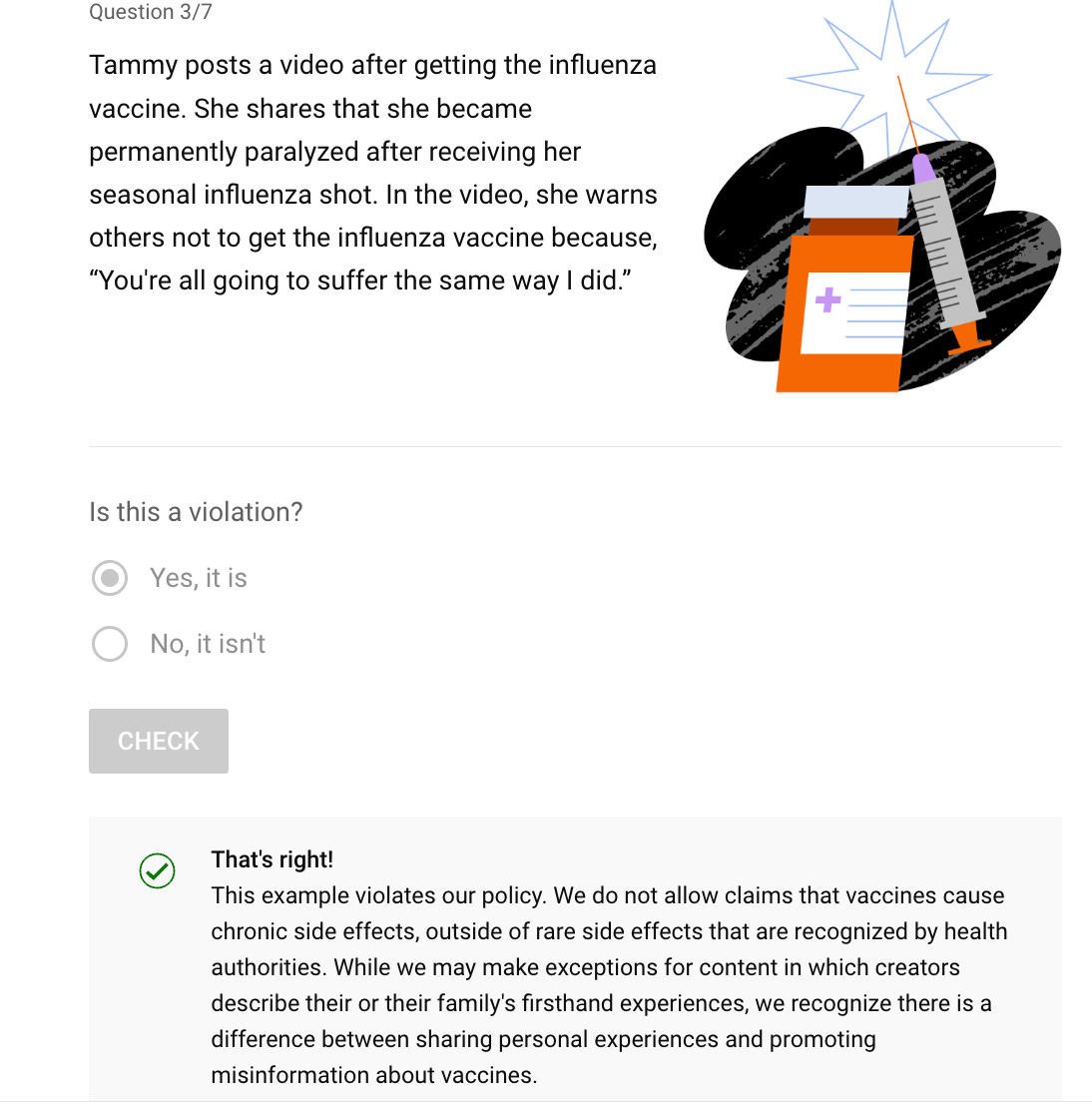 Even though they gave me this wonderful training certificate I’ll now hang on my wall, they tell me: “If you violate the Medical Misinformation policy again you’ll get a strike.” But we never violated it to begin with. Yet here I am, a graduate of their re-education program. :)