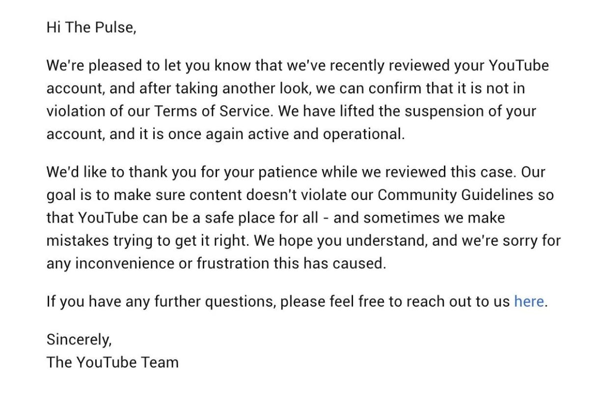 YouTube's gaslighting is endless, and still they can't explain what was "wrong" with our content.