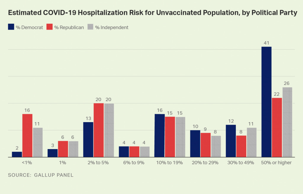 A Gallup poll from 2021 asked Americans what the risk of hospitalization is from COVID if you are unvaccinated. Only 2% of democrats answered correctly. Only 16% of republicans answered correctly. And 11% of independents answered correctly.