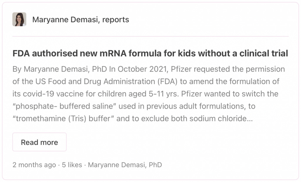 LinkedIn gave me a warning. My first offence was posting an article titled “FDA authorised new mRNA formula for kids without a clinical trial.”