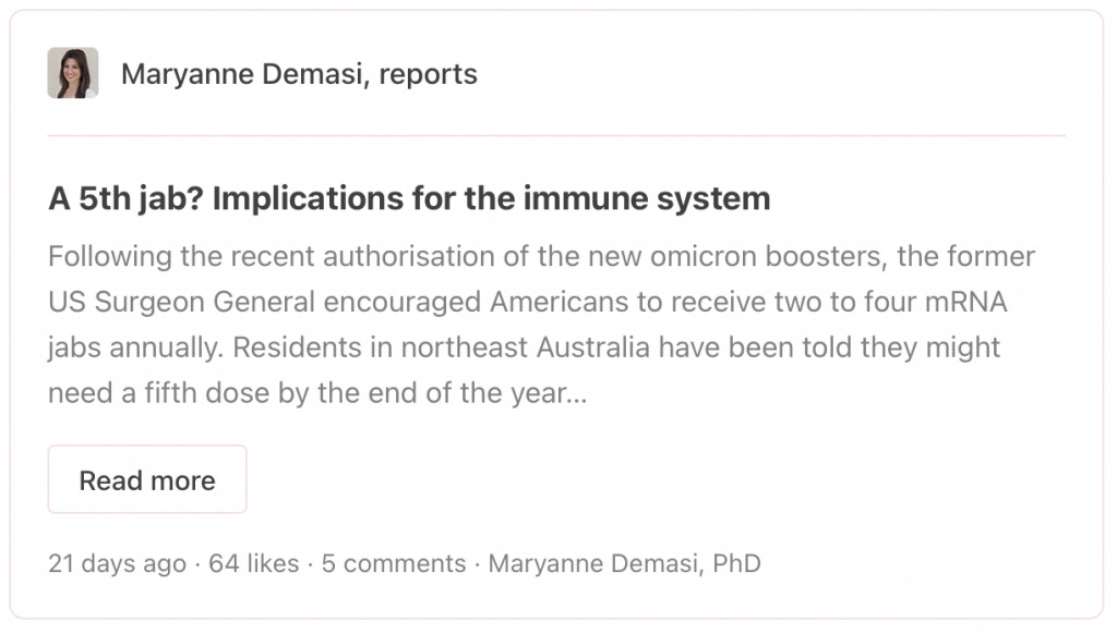 Two weeks later, I posted an article titled, “A 5th jab – implications for the immune system.”