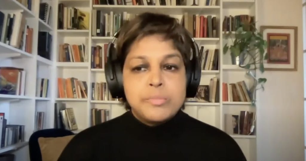 In some of the early minutes of the conference, National Post writer Rupa Subramanya shared some thoughts on the framing of the event itself. She was unable to attend in person, but a pre-recorded call was played on a large screen for the audience.