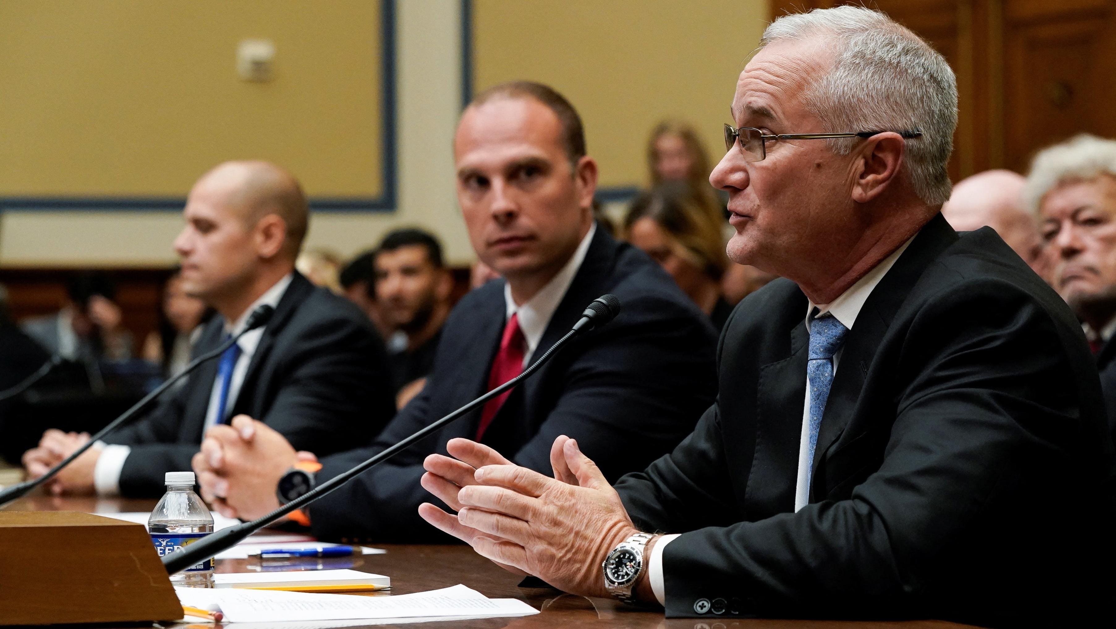 He was also joined by Ryan Graves, a retired Navy pilot who has since founded Americans for Safe Aerospace, and David Fravor, a former Navy commander.
