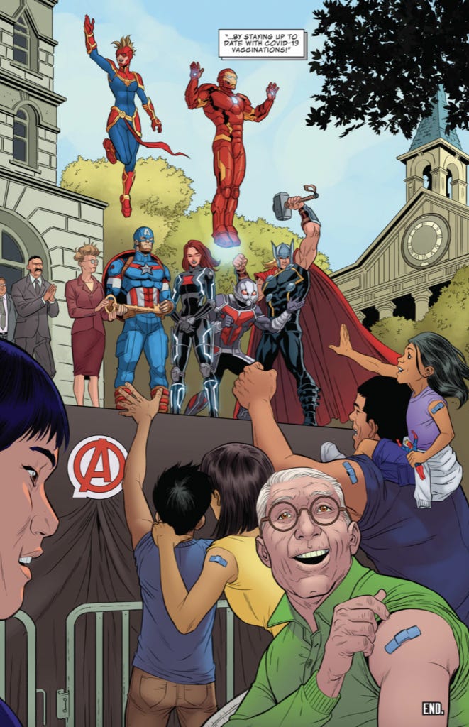This is brave of Marvel and Disney. Mixing face masks and vaccines with superheroes is either very confident, or very profitable. Dress it up how you want, but Band-Aids on old men’s arms aren’t exactly superhero-ish. It’s a long way from muscular Thor and his hammer. And every adverse vaccine event stands to puncture the allure of the superhero like a needle through a cape.