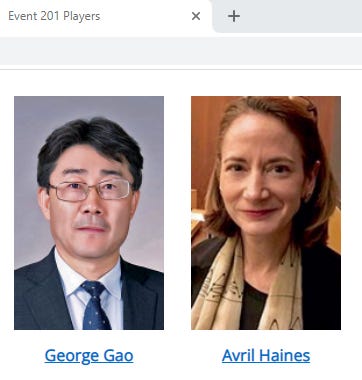 Here’s Gao at Event 201 right next to our very own Avril Haines, Director of National Intelligence—technically the highest-level intelligence official in the United States. Look at these cuties. Doesn’t that make you feel all warm and fuzzy? Phew. Making Kim Philby jealous.