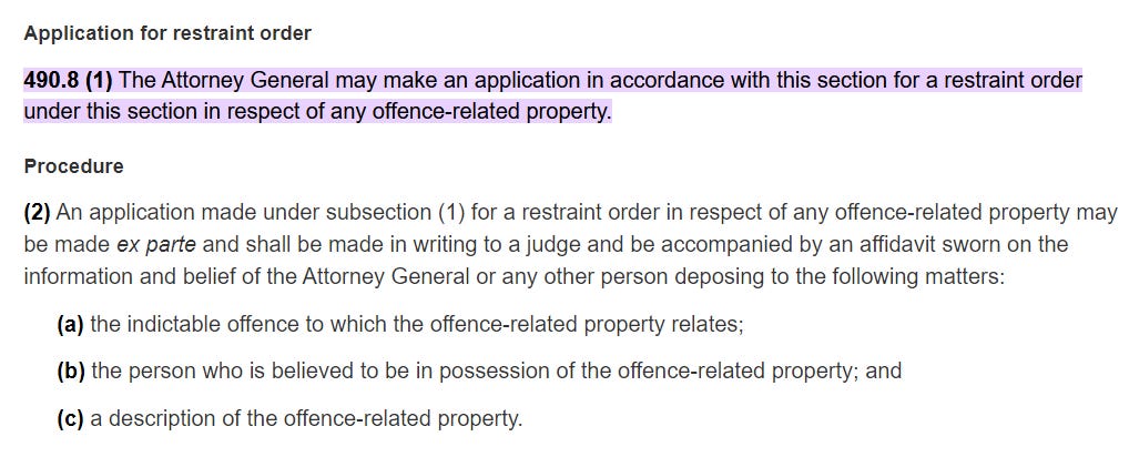 The Ontario government called upon section 490.8 of the criminal code to get this order granted.