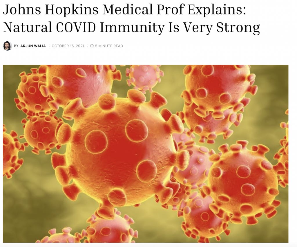 Perhaps one of the most mind boggling phenomena to happen in last year is the complete disregard of the effectiveness of natural immunity against COVID-19. There are over 130 studies that have emerged showing the benefits of natural immunity in regards to COVID. Corporate media, government authorities and pharmaceutical companies have been pushing the vaccine as the 'one size' fits all solution.