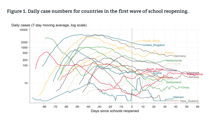 Data from the Center for Global Development published June 12, 2020. https://www.cgdev.org/blog/back-school-update-covid-cases-schools-reopen