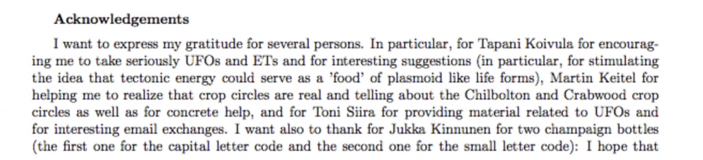 Clearly, she has an interest in this phenomenon because she published a paper titled “Crop Circles and Life at Parallel Space-Time Sheets.” It’s a two part series, and in it she examines the CraBwood crop circle.