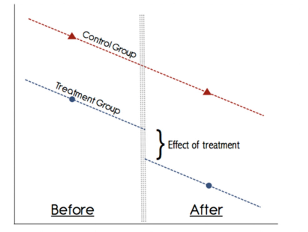 The difference in difference technique was originally used in econometrics as well and its usage dates back to the mid 19th century. It is also called the “controlled before and after study” and can be used to estimate the effectiveness of an intervention using observational data if certain assumptions are met.