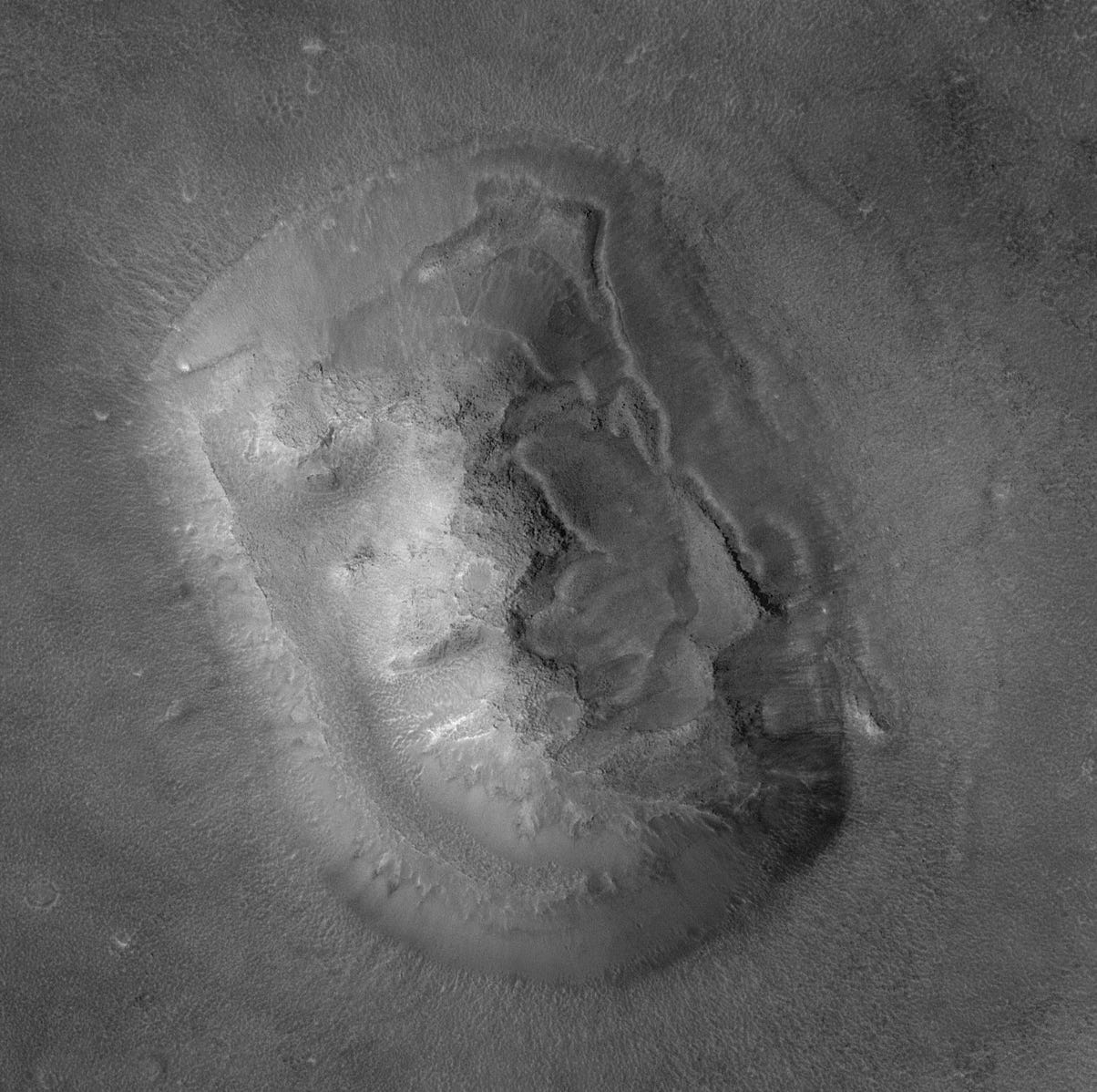 However, shown below, is the MRO CTX image: B01_010143_2216, acquired on 24th September 2008, from a distance of just over 311 km. This image has not been processed and presented here as it was obtained from the MRO HiRise website. According to Crater and colleagues, “It shows clearly an 'eyeball' in the eye cavity and 'teeth' in the mouth area.
