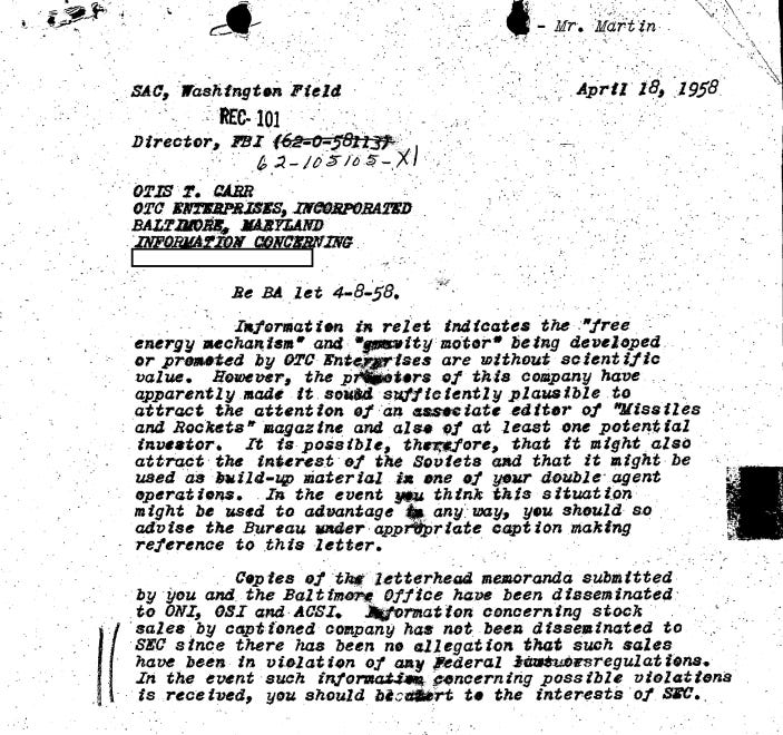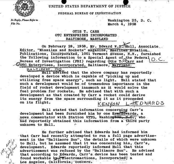 The document below, released by the Federal Bureau of Investigation, also hints to the idea that Carr's device works, and had been tested.