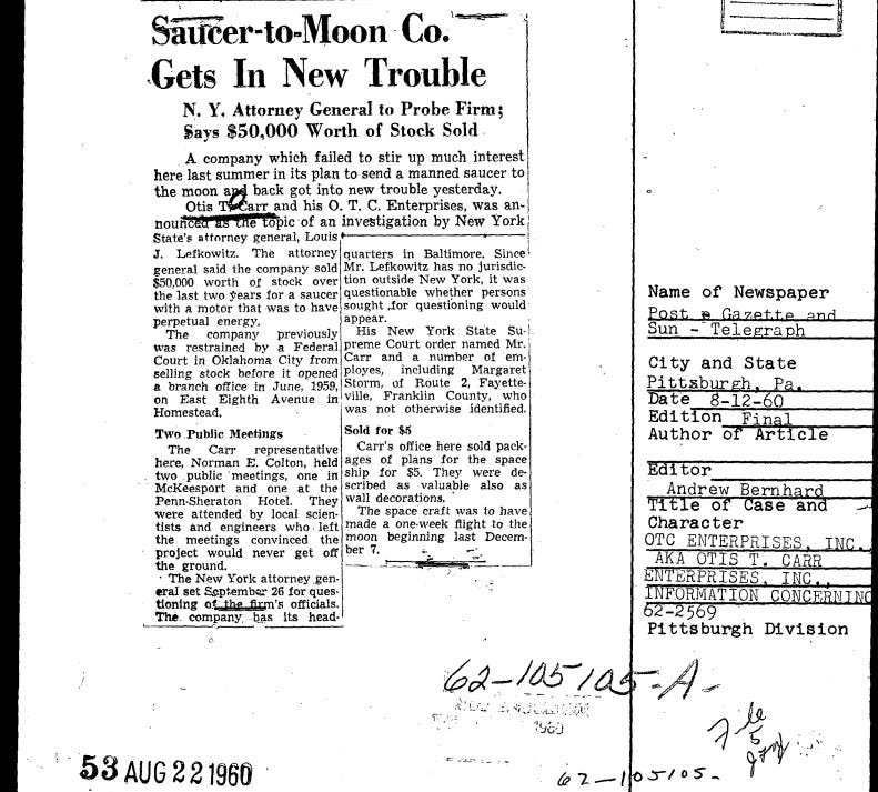 Or was he a charlatan? I guess we'll never really know. You can view the entire trove of FBI documents pertaining to Carr here.