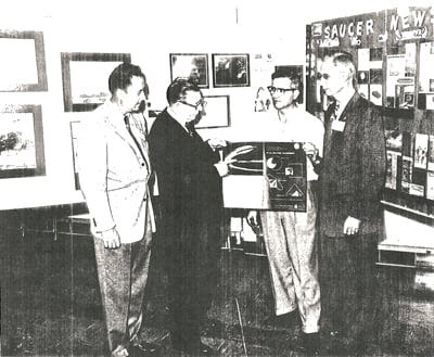 "Carr and his team constructed a number of fully functional flying saucers in the late 1950s. The flying disk worked and was demonstrated. Carr was serious about taking his craft to the Moon. However, two weeks after a dramatic test flight, their laboratory was forcibly closed, Federal agents confiscated equipment as well as all documentation. Authorities told them Carr's project would 'destroy the monetary system of the United States."