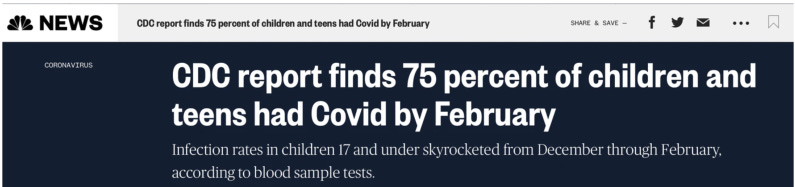 The FDA in their infinite wisdom also ignored that the CDC’s own estimates, which state that 75% of kids have already had COVID: