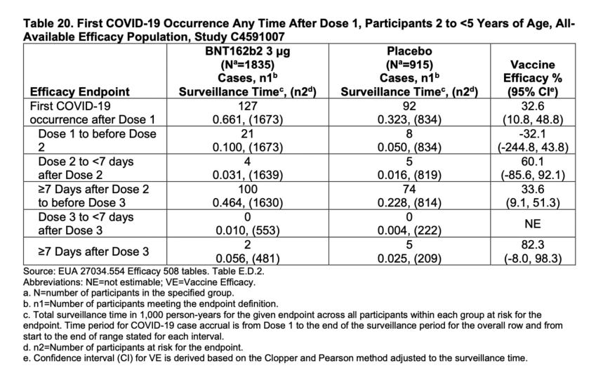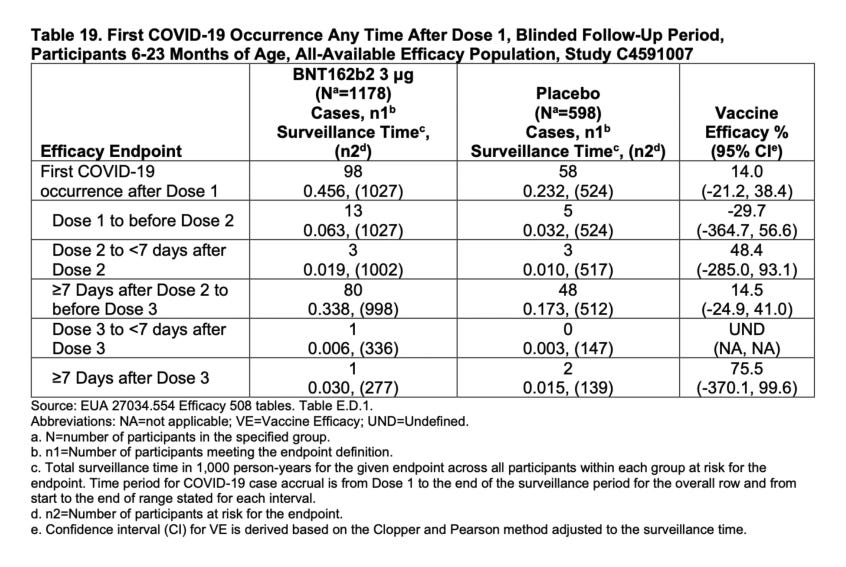If you want to be charitable, at least the overall efficacy percentage for those aged 2 to <5 didn’t have negative confidence intervals: