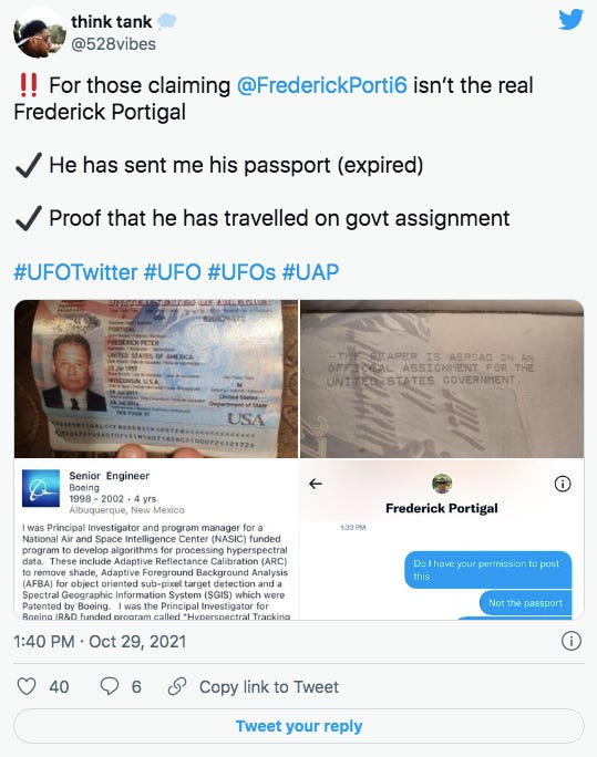 I want to be clear, Portigal's claims are immense, and as a journalist I did my best to verify what he is saying. Below I provide Frederick’s proof of identification and verification details as he sent his passport over.