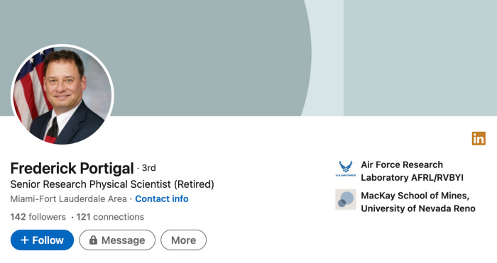A quick background check on Frederick Portigal reveals previous employment with organizations such as the Air Force Research Laboratory, Boeing, Northrop Grumman, and the National Science Foundation. He has a message for the world now that he is retired and learning how to use Twitter from a sailboat.