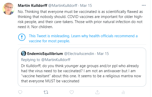 After the CDC blacklisted him for expressing a scientific view that was “too pro-vaccine” Twitter then censored Kulldorf for a tweet expressing a scientific view that was “anti-vaccine.”