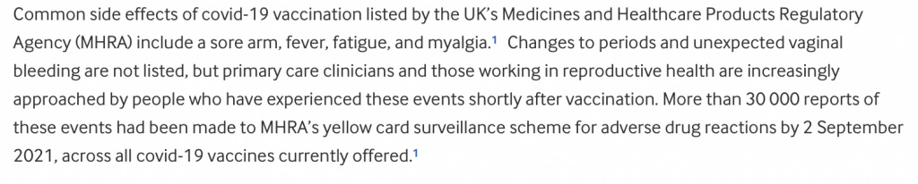 There have also been over 30,000 reports filed to the UK yellow card system of women claiming menstruation cycle irregularities and pain. Two researchers, Kate Clancy and Katharine Lee, who specialize in women’s health, have collected over 140,000 reports of women experiencing a change in their period after the vaccine. They are conducting an open study.