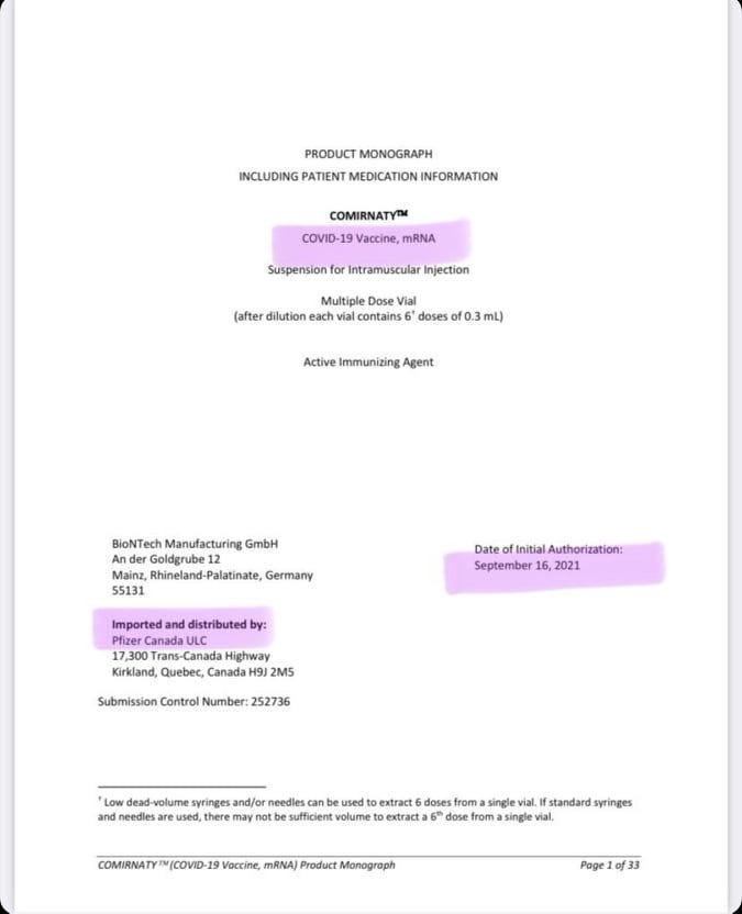 However, when looking at the September 16, 2021 version of the Pfizer product monograph, which is a factual, scientific document on a drug product, it states that it is unknown if the approved Pfizer vaccine, now called Comirnaty, affects fertility in humans.