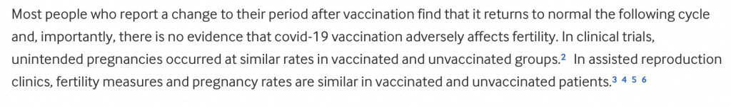 Yet in that same article, Male acknowledged that the affect on menstrual cycles has not been included in warnings on vaccines.