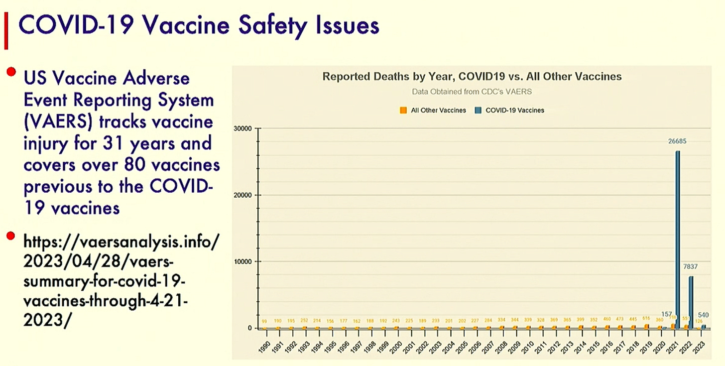 “The Pharma-owned medical establishment will likely never admit that mistakes were made. The CDC (Center for Disease Concoction and Perpetuation) continues to ignore the nearly quarter million reports of Serious Adverse Events (SAEs) and tens of thousands of reports of deaths following Covid-19 vaccination in their own adverse event reporting systems which were created as a concession to the public in exchange for granting vaccine manufacturers immunity from any liability related to their products.”