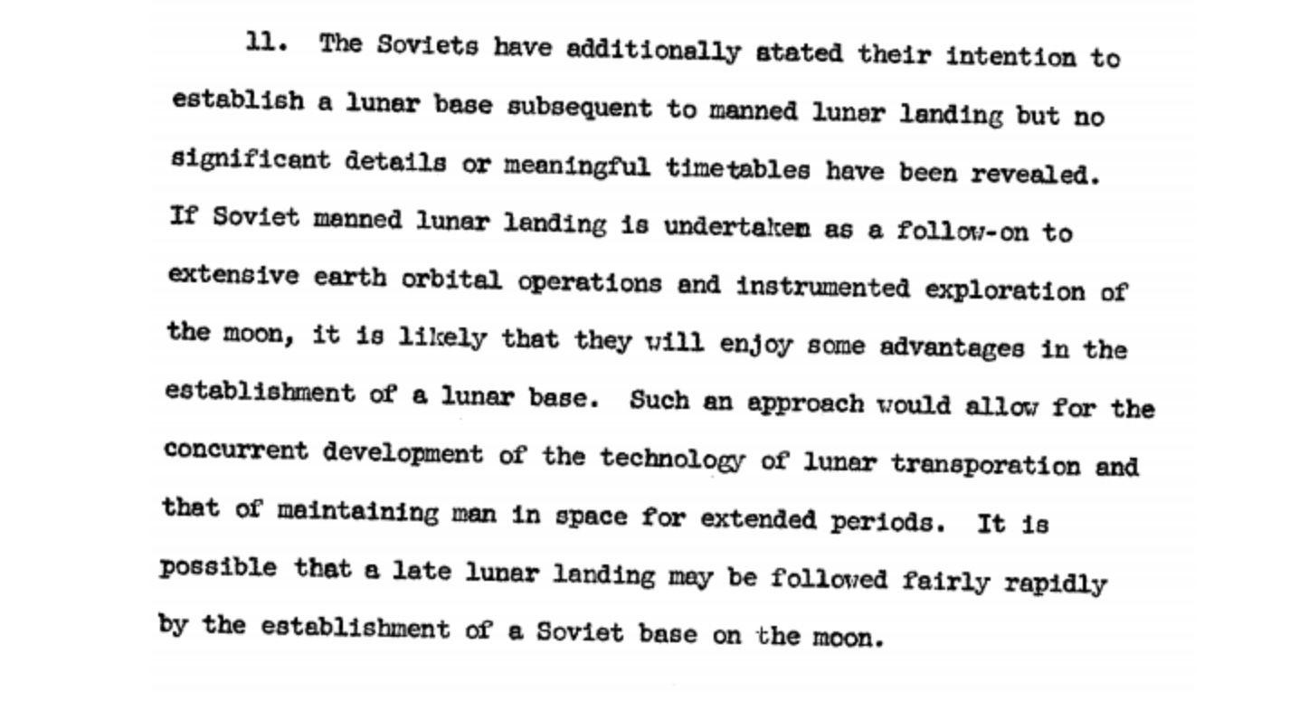 Another document from 1965 regarding the CIA keeping tabs on Soviet space plans reads as follows: